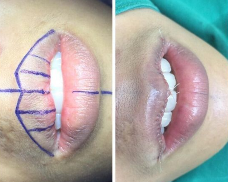 Esta técnica está pensada para disminuir el tamaño de la boca. Una especialista en este tipo de reducción es la Dra. Melissa Doft, que trabaja en la ciudad de Nueva York, ella menciona que este tipo de procedimientos de los labios son más comunes en Asia y el objetivo es extraer un poco la piel del labio para tener un contorno más delgado. Espera, espera; ¿no eran las asiáticas las que suspiraban por tener una boquita como la de Kim Kardashian hasta el punto de meterse botes a presión en la boca?