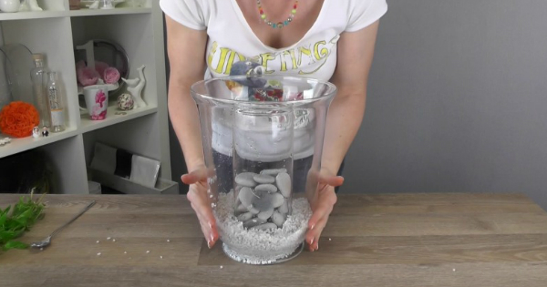 En el espacio que queda en el florero puedes poner arena, más piedras decorativas e incluso conchas para decorar a tu gusto.