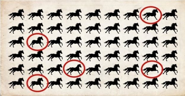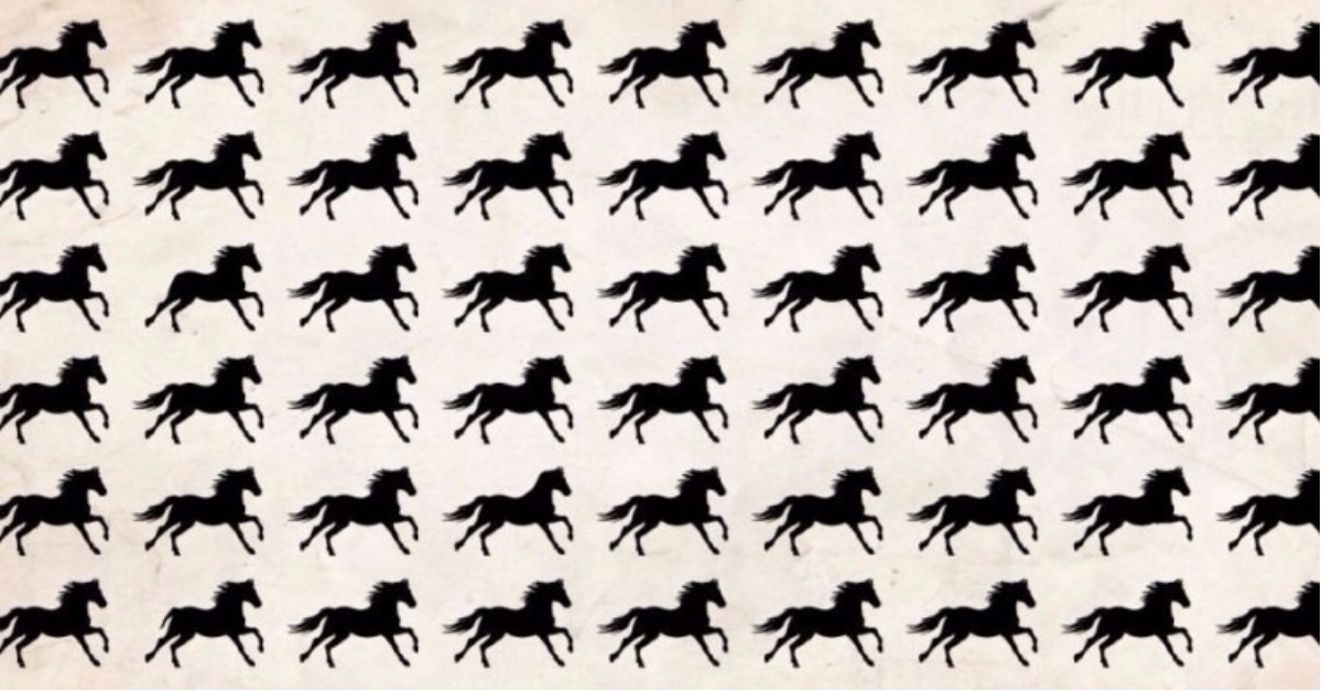 Si eres aficionado a los retos visuales, probablemente ya hayas encontrado (y resuelto) cientos de ellos en Internet y, a estas alturas, ninguno te suponga un verdadero desafío. Estás de enhorabuena porque este que nos ocupa es realmente difícil y resolverlo en un tiempo razonable (pongamos un par de minutos como máximo) está al alcance de muy pocos. Solo te diremos que, a pesar de que un primer vistazo indica lo contrario, no todos los caballos son iguales en esta imagen... No te apresures a ver la respuesta e inténtalo por ti mismo. ¡Pon en marcha el cronómetro!
