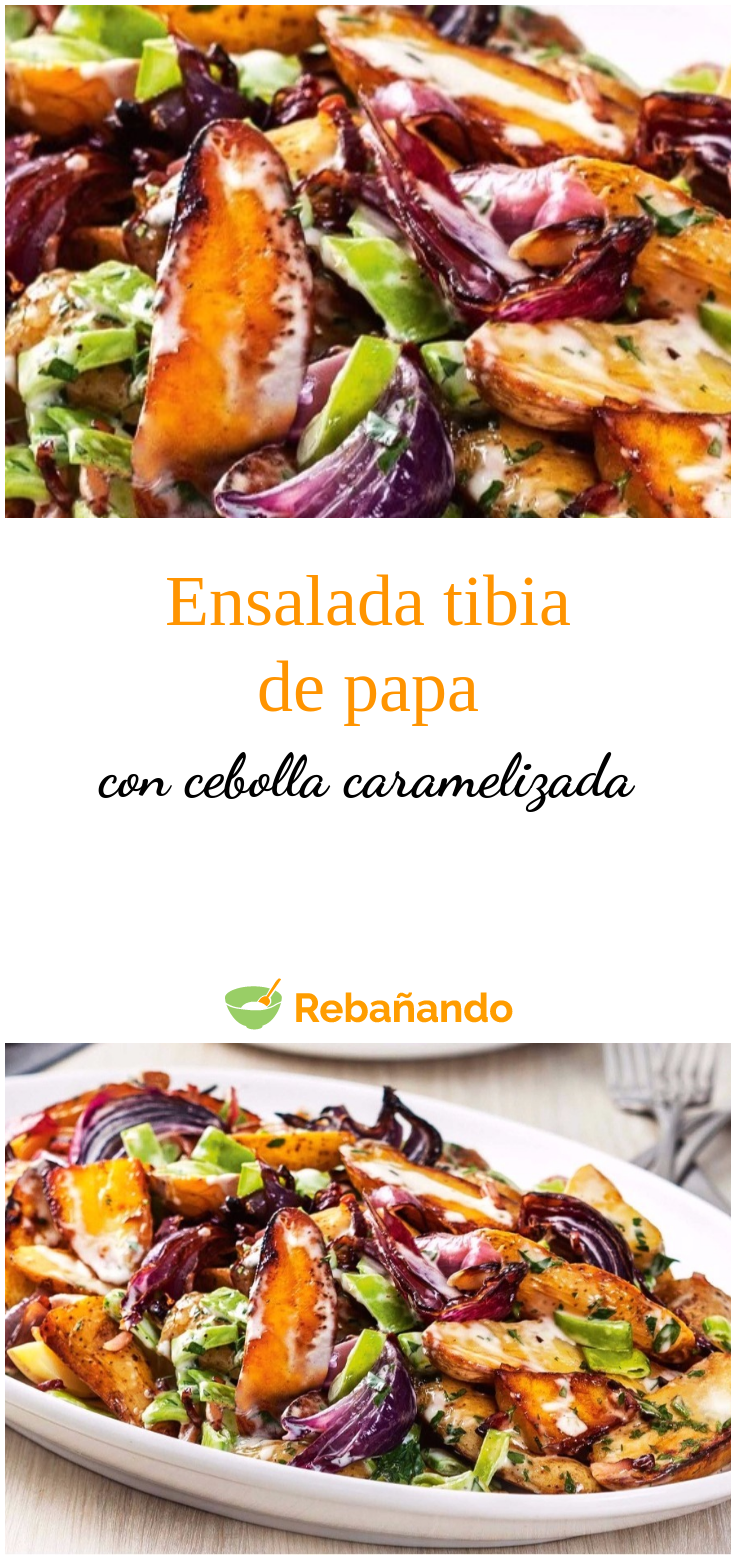 Ensalada templada de patata y cebolla caramelizada, sana y llenadora