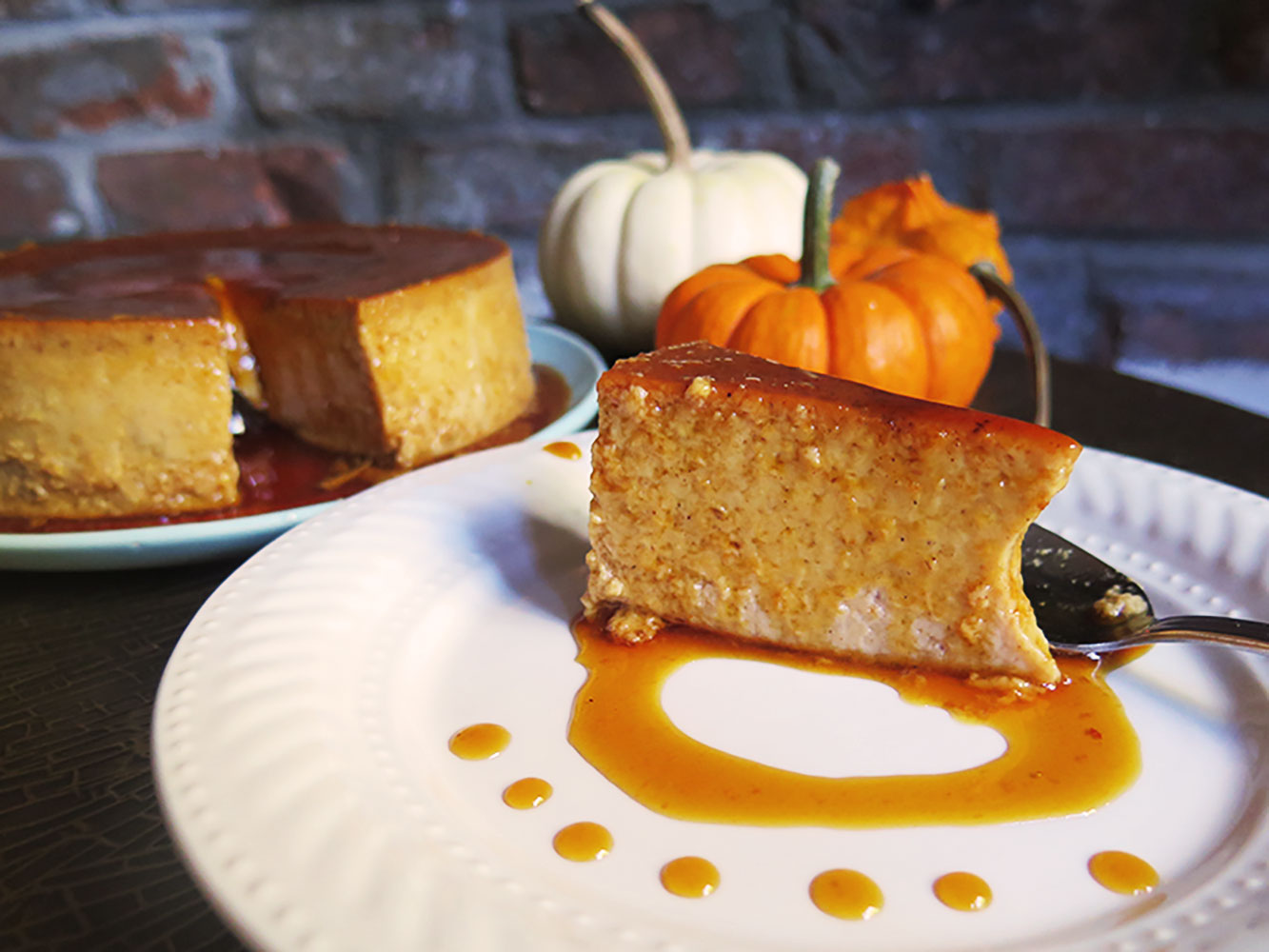 ¿Tienes una calabaza y no sabes cómo prepararla? ¿Qué tal un cremoso flan de calabaza y queso crema?