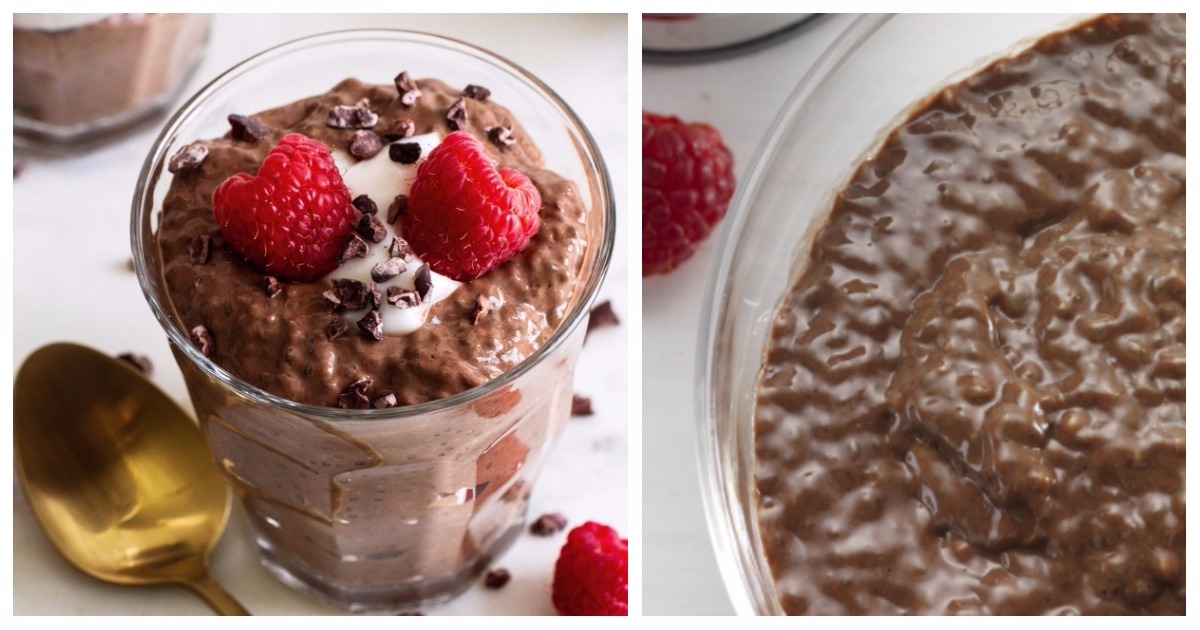 - Coloca la leche, la chía y el cacao en un recipiente y mezcla perfectamente. También puedes ponerlos en un frasco con tapa y agitarlo para mezclar.