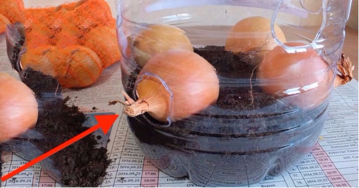Agujerea una garrafa y mete cebollas en su interior para hacer crecer este ingrediente