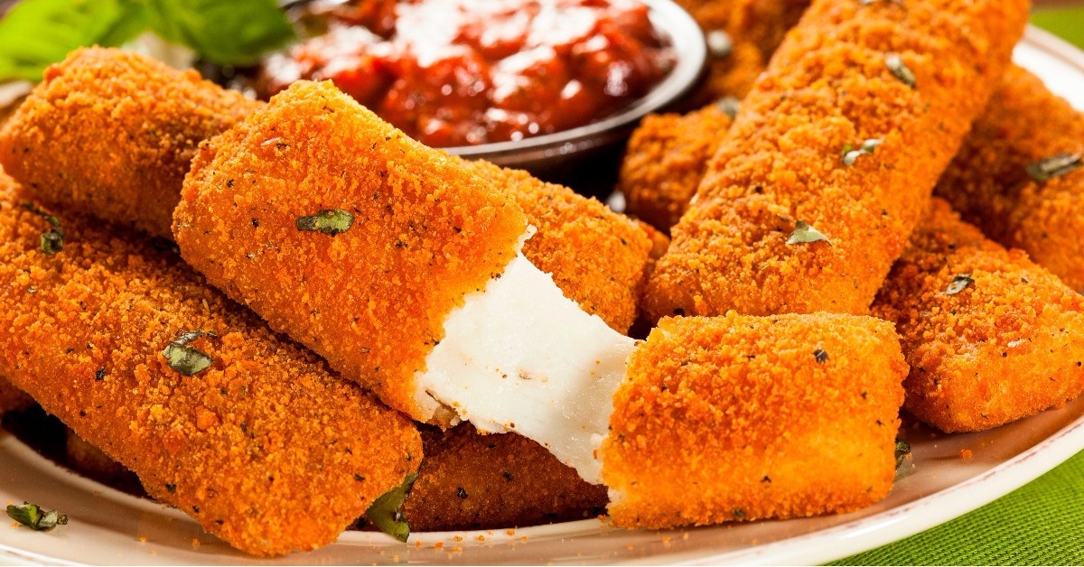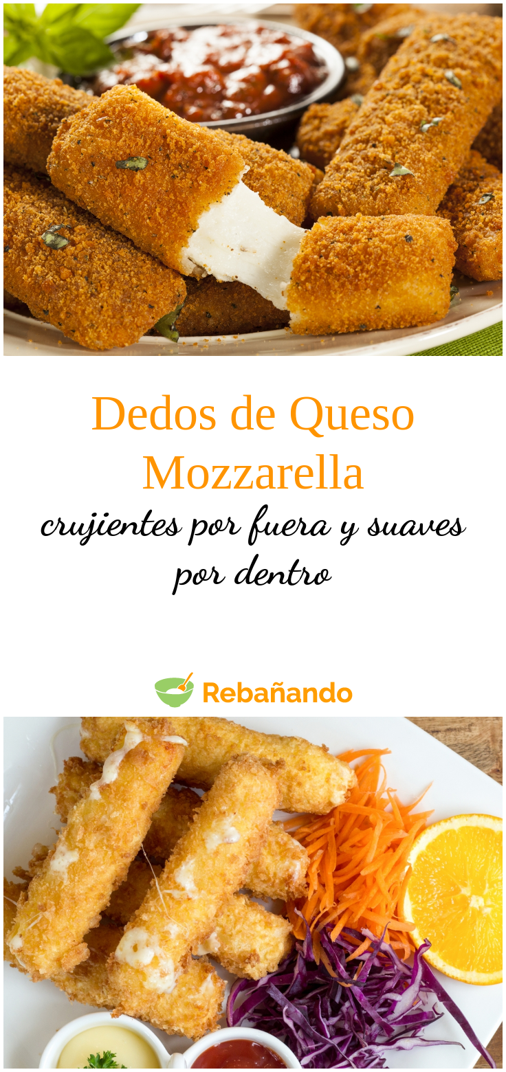 Dedos de queso mozzarella, crujientes por fuera y suaves por dentro