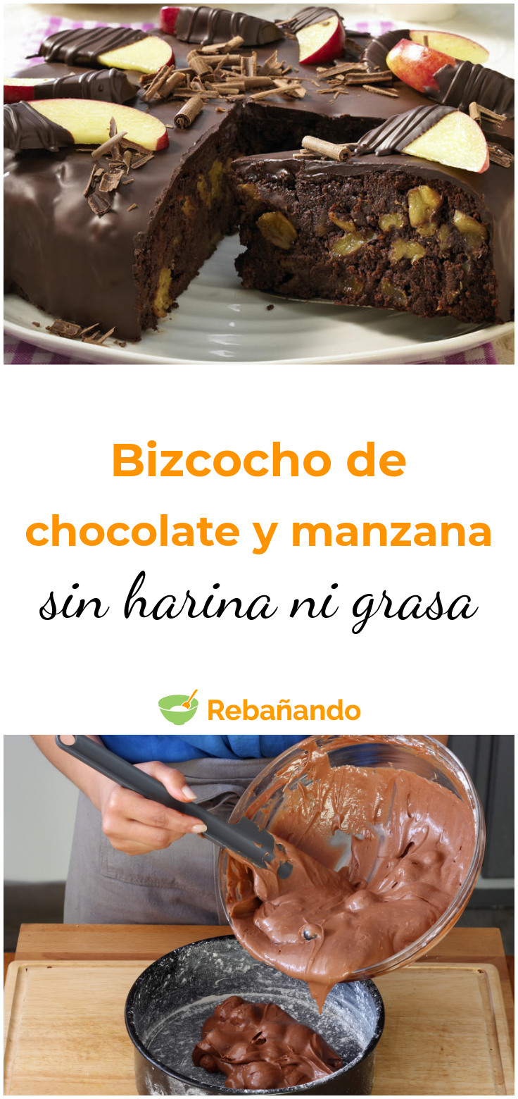 Bizcocho de chocolate y manzana, ¡sin harina ni grasa!