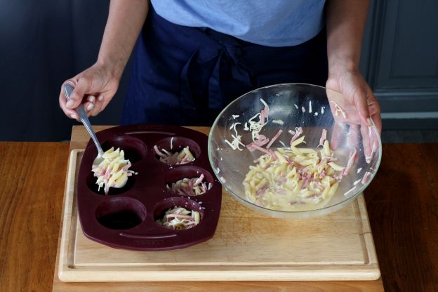 Mini gratinados de pasta con jamón, ¡listos en 15 minutos!