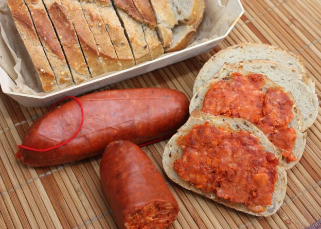 Calienta las rebanadas de pan de molde para hacer un sándwich con sobrasada, queso fresco y una pizca de miel. ¡Delicioso!