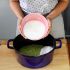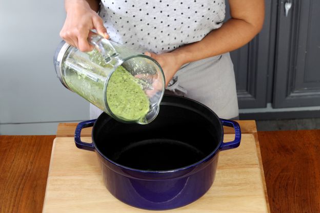 Colocar los kiwis en una licuadora y hacer un puré. Colocar el puré de fruta en una gran cacerola.