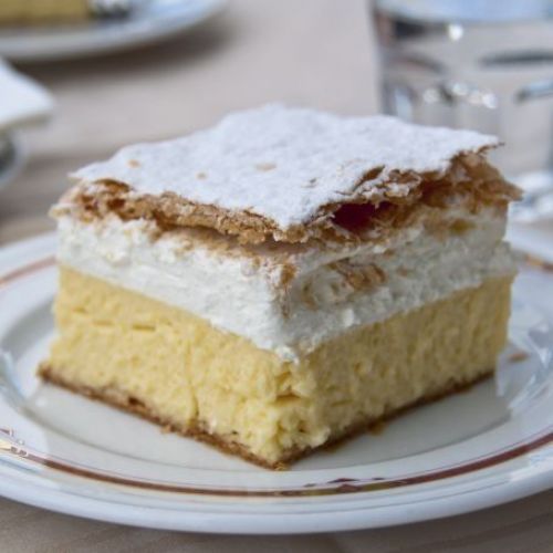 Bizcocho con crema de coco y merengue