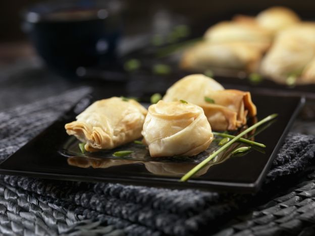Aquí nos pusimos exquisitos, y es que si da la casualidad de que también te sobra un poco de masa dilo, puedes preparar estos llamativos saquitos de revuelto de champiñones y langostinos, ¡qué rico!