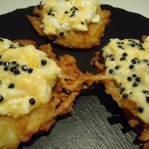 Prepara este revuelto de caviar y sírvelo en un lecho de patatas rostizadas... Rico, sencillo y ¡muy sofisticado!