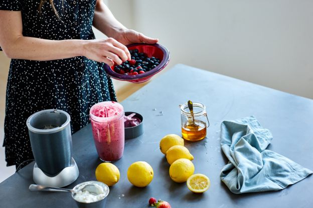 Batido proteico de suero de leche y frutos del bosque