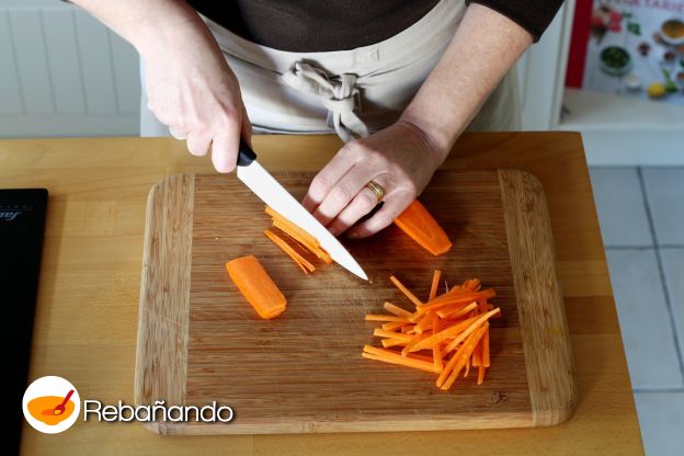 Luego, pela las zanahorias y córtalas en juliana.