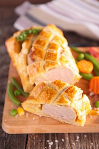 Prueba el solomillo de cerdo en costra de hojaldre, pero antes de enrollarlo, envuélvelo con lonchas de jamón. La carne quedará aún más jugosa y sabrosa.