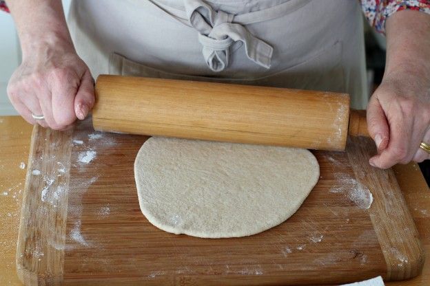 4. Cuando la masa esté lista, espolvorea con harina y trabájala con las manos. Si está suave y elástica, es momento de amasar con un rodillo sobre tu plancha de trabajo.