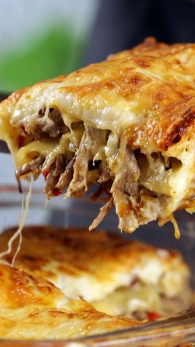 Esta lasaña es el sueño hecho realidad de las personas que aman la carne mechada y la comida italiana. Un bocado que se deshace en la boca.