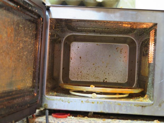 Si no quieres que tu microondas acabe así, NUNCA los calientes sin tapa.