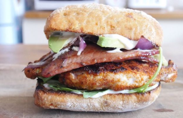 ¿Se te antoja un plato original y delicioso para disfrutar este fin de semana? ¡No busques más! Las hamburguesas de pollo son una excelente alternativa a las de res, ya que su carne contiene menos grasa. A continuación te enseñamos a prepararlas paso a paso, acompañadas de crujientes trozos de panceta para darles más sabor. Podrás disfrutarlas con una ensalada y una salsa de hierbas aromáticas para una comida más ligera, o con pan de hamburguesa y todos sus acompañamientos: lechuga, tomate, aguacate, cheddar y aros de cebolla. ¡Son irresistibles!