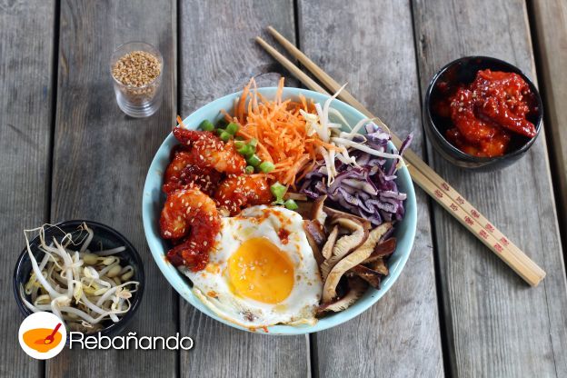 Escápate a Corea con este Bibimbap de gambas y vegetales