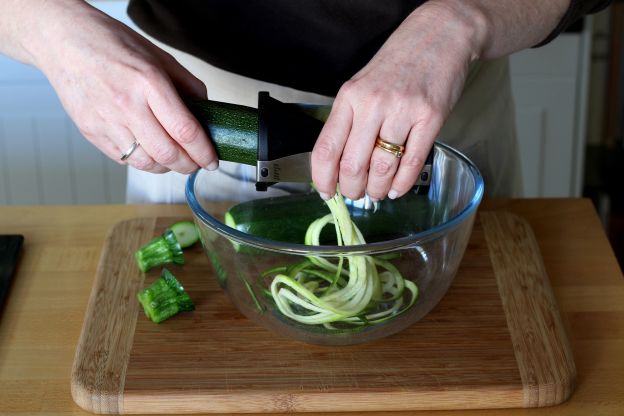 El funcionamiento es bastante básico. Su sistema es muy similar al de un sacapuntas corriente. Las "virutas" que van saliendo cada vez que le damos la vuesta al alimento, serán nuestro ricos espaguetis.