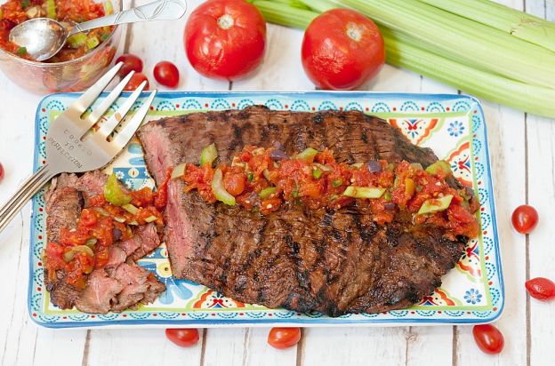 Bistec de falda con ensalada de Bloody Mary