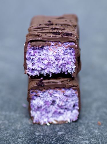 Dale un toque de sabor a tus barritas de coco añadiendo moras trituradas a la masa. Forma rectangulitos con tus manos, deja enfriar media hora y baña con chocolate derretido. ¡Un saludable snack que puedes llevar a todas partes!