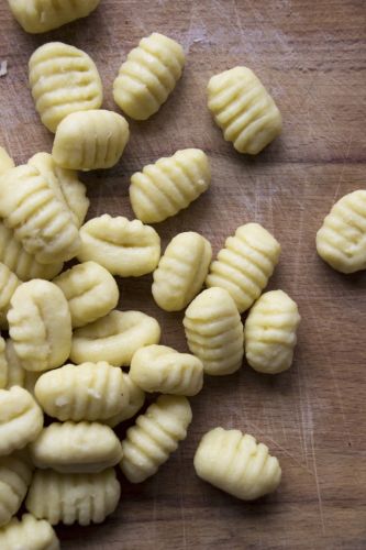 Los ñoquis se preparan con puré de patata, un poco de harina y una yema de huevo. Aunque suelen servirse como ingrediente principal acompañados de una salsa al pesto, son ideales para acompañar algunos platos de pollo en salsa.