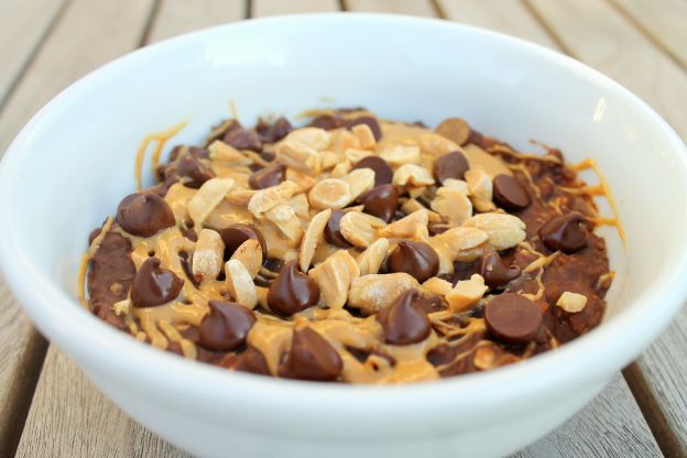 Un desayuno delicioso que puedes preparar desde la noche anterior. Mezcla en un plato hondo o frasco 1 taza de avena, 1/2 taza de leche, 1 cda de cacao y mezcla. Decora con 1 o 2 cdas de mantequilla de maní, maní en trozos o fruta fresca al gusto. Tapa con film plástico y deja en el refrigerador toda la noche. ¡A la mañana siguiente tendrás un desayuno rápido y nutritivo!