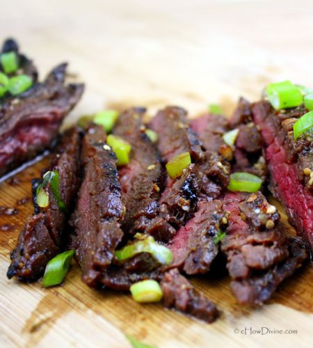 Las carnes marinadas coreanas están llenas de sabores complejos y robustos, como en esta receta de bistec asado a la parrilla al estilo coreano. Lleva tamari (que es salsa de soja sin gluten), néctar de agave, mirin, aceite de semilla de sésamo tostado, ajo y pimienta, resultando en un filete tierno que se cocina perfectamente en la parrilla.