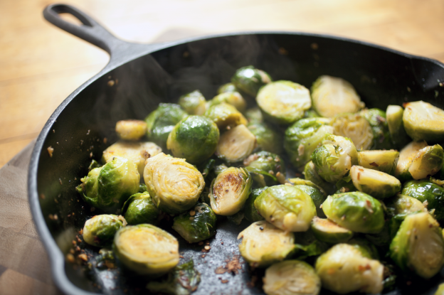 La manzana, las avellanas y el jarabe de arce invitan a la fiesta a las coles de Bruselas en esta fácil y saludable receta.