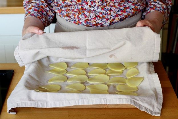 Cúbrelas con un segundo paño y deja que se sequen unos 10 minutos. Echa el aceite en una olla o cazo y caliéntalo a 170ºC.