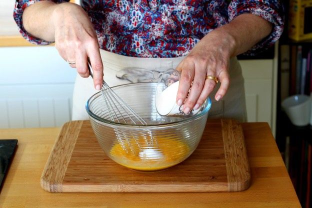 Batimos bien, añadimos el azúcar, y seguimos batiendo hasta que todo quede bien mezclado.