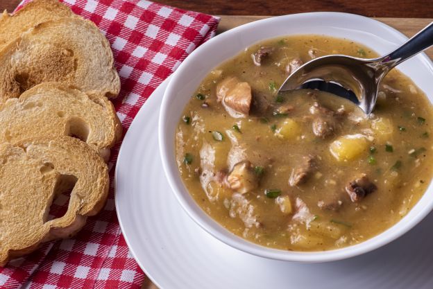 4. Añadir la mandioca escurrida y cocinar hasta que la carne esté muy tierna (otros 40 minutos, más o menos, si es necesario, añadir un poco de agua de la mandioca). Si quieres que la salsa sea un poco más espesa, machaca dos o tres trozos de yuca con un tenedor y mezcla bien.