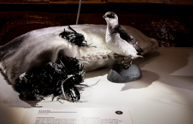 Kiviak o kiviaq es un alimento tradicional de Groenlandia elaborado a partir de pequeñas alcas (una especie de pingüino que se puede ver en la foto) fermentado en la piel de una foca.
