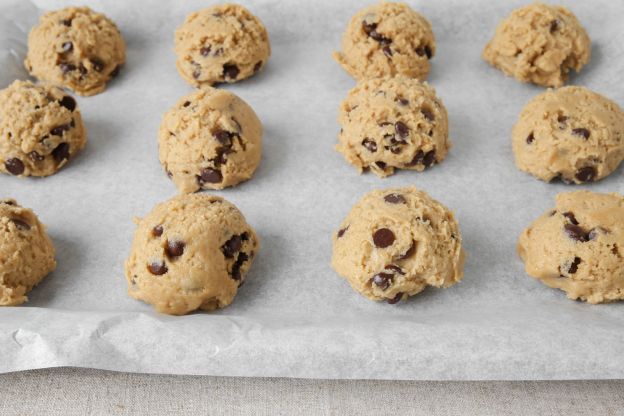 Forra siempre tu bandeja de hornear con papel pergamino o con un tapete reutilizable para hornear.  Las cookies que se colocan directamente en la bandeja de horno caliente tienen tendencia a quemarse en la parte inferior y es más probable que se peguen. Recuerda también que si utilizas una bandeja de horno oscura, las galletas se cocinarán más rápido, por lo que tendrás que adaptar las instrucciones de la receta original. Para evitar la sobrecocción, baja la temperatura en 25° y reducea el tiempo de horneado en unos 4 minutos.