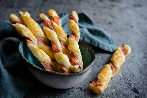 Para un sabroso aperitivo, prepara nuestros palitos de hojaldre con speck y queso parmesano. Disfrútalos calientes y perfumados, se deshacen en la boca.