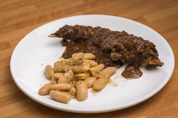 Un buen guiso de liebre con vino tinto (en este enlace te decimos cómo hacerlo) es perfecto para acompañar con unas habas catalanas.