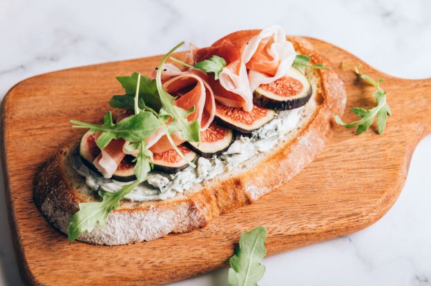 4. Dispón en cada tostada las rebanadas de higo y luego el jamón.