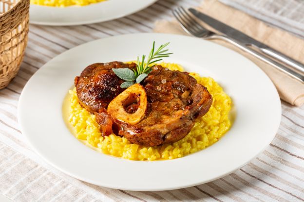 El osobuco de ternera es una parte de la pata de la vaca, que va desde la pantorrilla hasta la corva del animal. Se cocina en salsa hasta que su textura sea suave y se deshaga fácilmente. Es ideal para servir con un risotto o patatas.