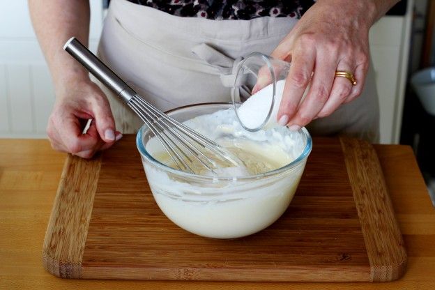 Echamos el azúcar y con unas varillas, batimos durante unos cuantos minutos.