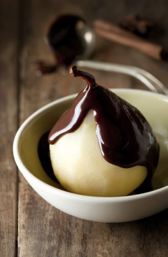 Una versión rápida de este postre francés. Basta con lavar y pelar una pera, colocarla en un bol (puedes partirla en trocitos o presentar la pieza de fruta entera). Funde chocolate de repostería al baño maría (puedes probar con chocolate blanco, aunque tal vez quede un poco más empalagoso) y una vez listo el chocolate, échalo por encima de la fruta.