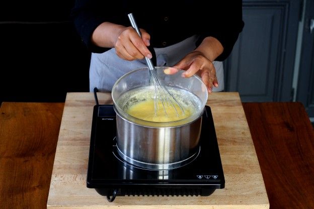 - Agrega un chorrito de agua y cocina hasta que se forme un almíbar.
