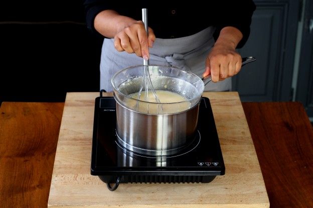 Con el fuego bajo y removiendo constantemente, calienta la mezcla hasta que espese.