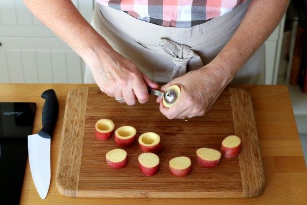 Vacía los trocitos de patata con ayuda de una cuchara de helado.