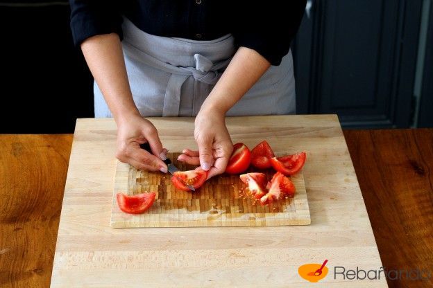 Lava y corta los tomates en cuartos. A continuación, quítales las semillas.