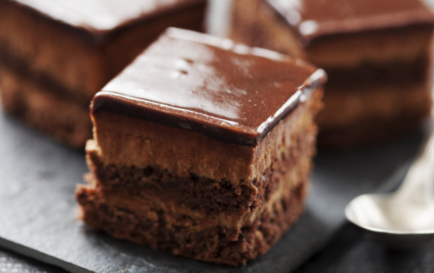 La Opéra de chocolate es un delicioso postre a base de capas de bizcocho empapadas de licor, chocolate y crema de café.
