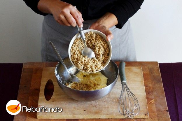 Agregar las nueces picadas y mezclar nuevamente con ayuda de un tenedor.