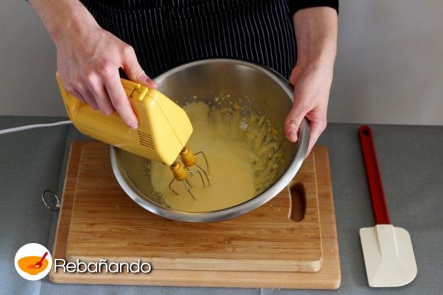 Bate las yemas con el azúcar hasta que la preparación blanquee.