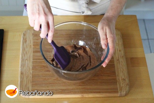 Cuando tengamos el chocolate fundido, lo mezclaremos bien con una espátula de repostería.