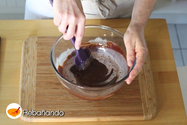 Cuando los ingredientes estén bien mezclados, añadimos el resto de la crema y seguimos mezclando.